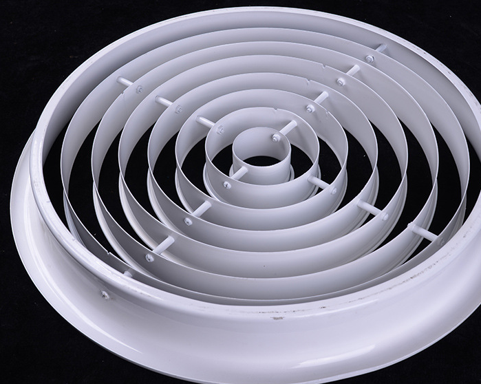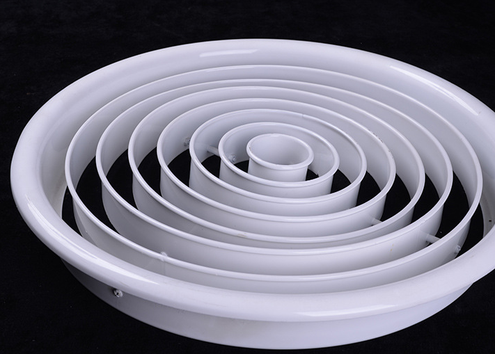 結(jié)構(gòu)外觀為圓形,內(nèi)心有多個(gè)圓環(huán)組成,能可上下45度調(diào)整風(fēng)口阻力小,適用于劇院,體育館及樓層較高的場(chǎng)所,可附加風(fēng)量調(diào)調(diào)節(jié)閥。產(chǎn)品外形美觀外。表面采用靜電噴塑,烤漆或者陽(yáng)極處理。選用優(yōu)質(zhì)加厚鋁合金材料,更加耐用